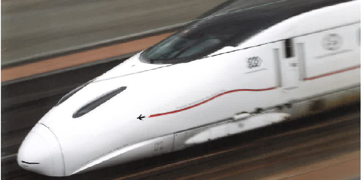 外観は、流れるようなロングノーズに黒と朱漆のスワロールーフ。九州の情熱と誇りに満ちた赤と金のリボンラインが純白ボディを引き締めます。また、車内の随所に最新の素材と先端工法を駆使し、地域に根ざす職人伝承の技とコラボレーションすることで個性豊かな新幹線を演出しています。