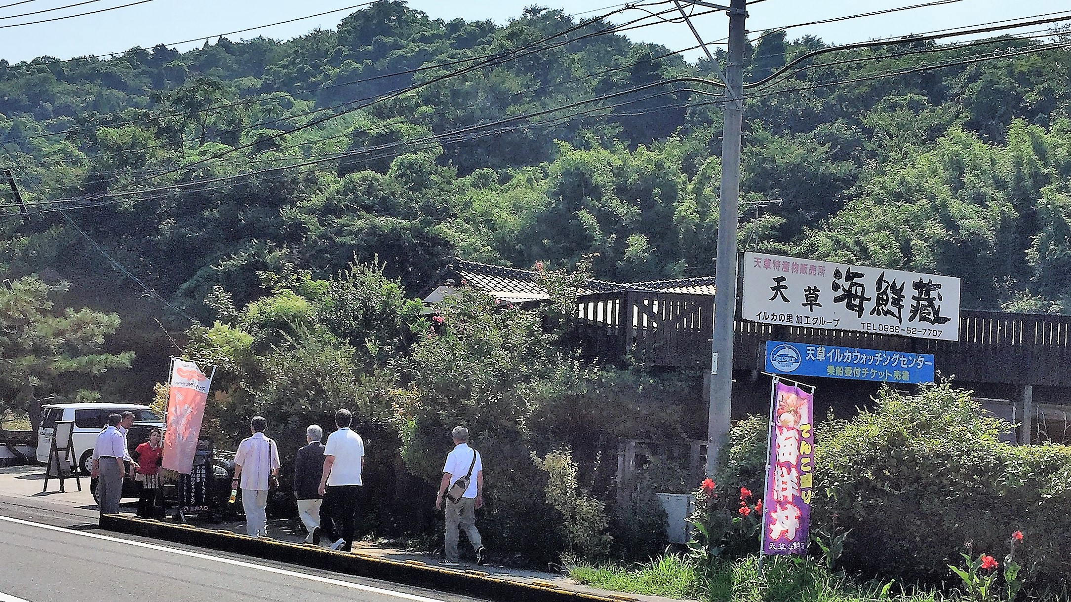 イルカウォッチングなら天草海鮮蔵にお任せください。熊本・天草の豊かな自然がもたらすイルカウォッチングは遭遇率はほぼ100%!そしてイルカ達に癒やされた後は、新鮮な海の幸に舌鼓。名物のウニコロッケ、蛸入りたこ万もぜひご賞味ください。